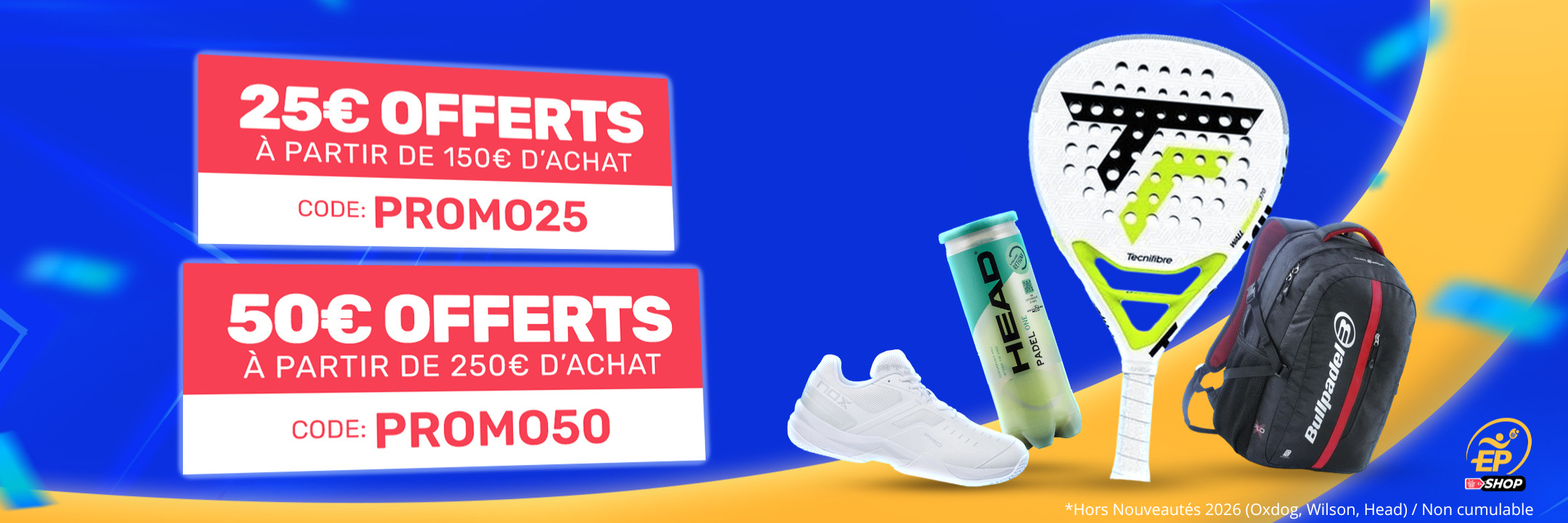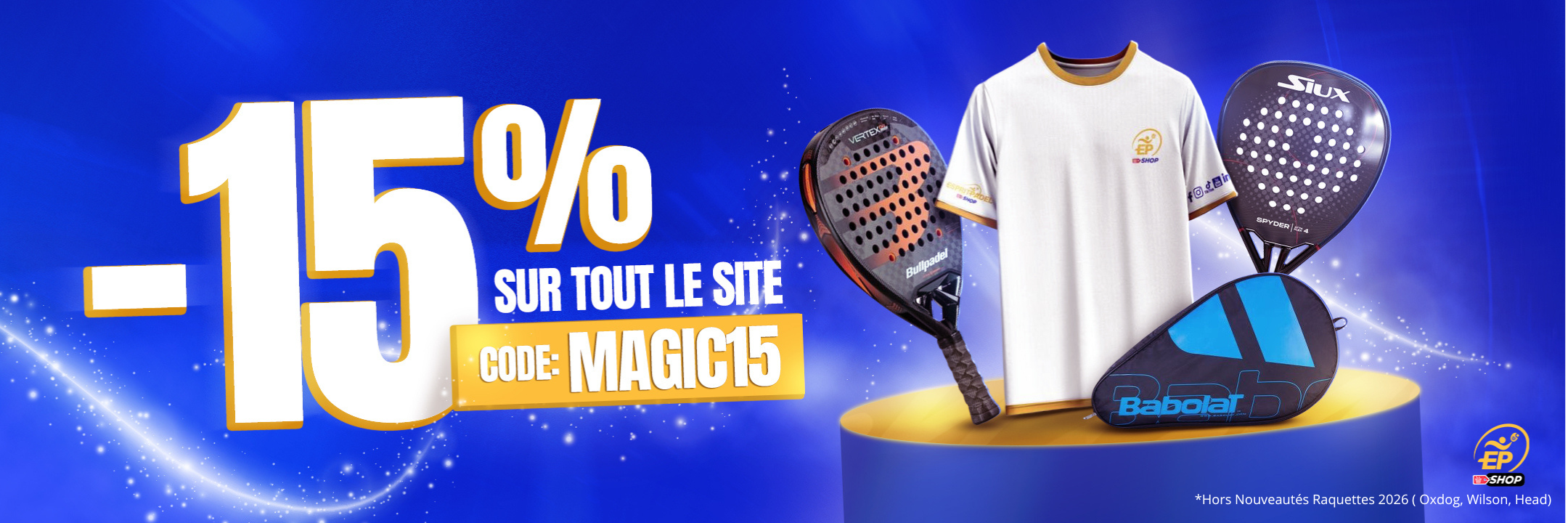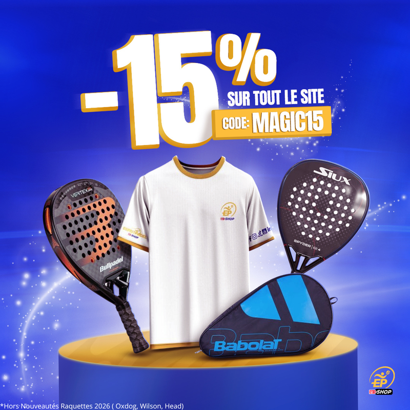 Esprit Padel Shop est la boutique en ligne française dédiée à l'équipement de padel. Forte de plusieurs années d'expérience, notre équipe sélectionne pour vous les meilleurs produits aux prix les plus compétitifs du marché. Raquettes de padel, chaussures de padel, sacs de padel, balles de padel, vêtements de padel et accessoires de padel : retrouvez tout le matériel nécessaire pour performer sur les pistes, livré en 24 à 48h en France.