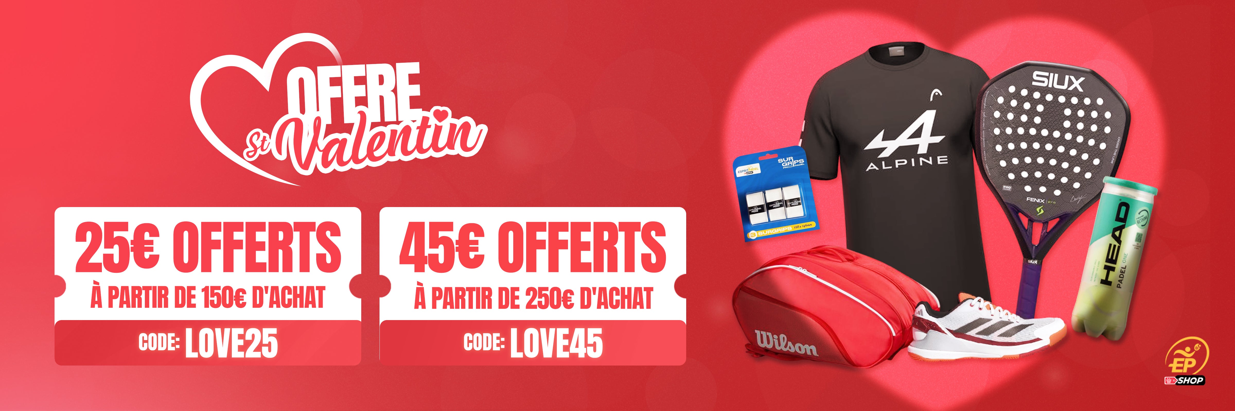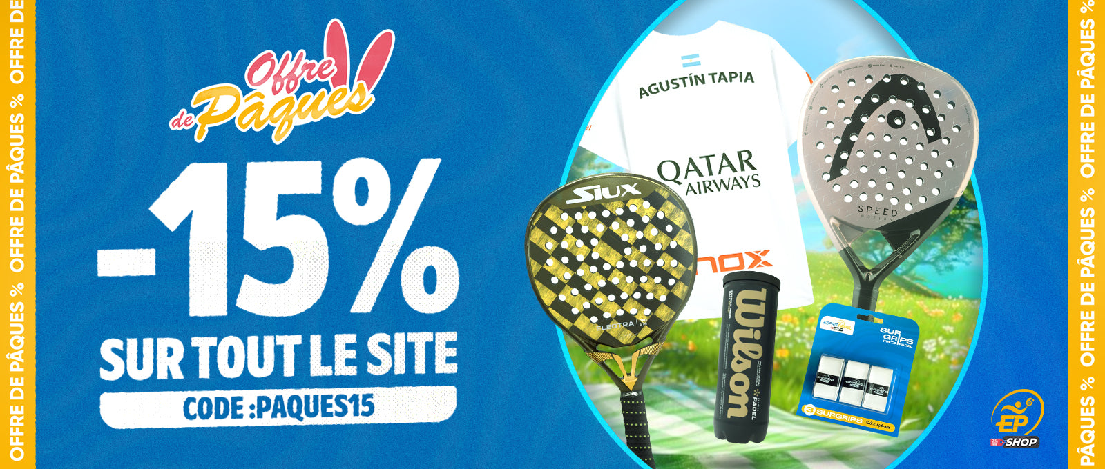 Esprit Padel Shop est un concept innovant de vente en ligne de matériel de padel. Un concept qui permet aux clubs partenaires de bénéficier d’une rétribution financière pour l’achat réalisé par un de leur joueur. Récompenser les clubs pour leur implication dans le développement du padel, c’est clairement l’idée que nous voulons développer. Clubs de padel privés ou clubs de tennis publics avec terrains de padel, n’hésitez pas à nous contacter. Vous y trouverez une large sélection de raquettes et d’accessoires de padel sélectionnée par nos soins. Grâce à nos années d’expérience au sein d’Esprit Padel nous pouvons vous proposer des produits de qualité aux meilleurs prix. En effet, nos mis à jour régulières vous permettent d’acheter nos raquettes de padel aux prix les moins chers du net. Cet engagement se fait aussi sur les accessoires, les vêtements, les chaussures ainsi que sur les balles de padel et les balles de tennis.