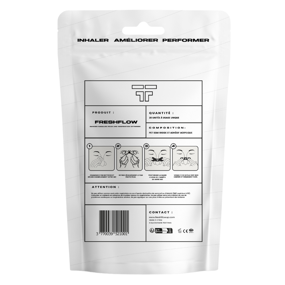 Offrez à votre respiration un souffle nouveau avec les bandes nasales FreshFlow blanches, les bandes nasales discrètes pour un confort respiratoire au quotidien.