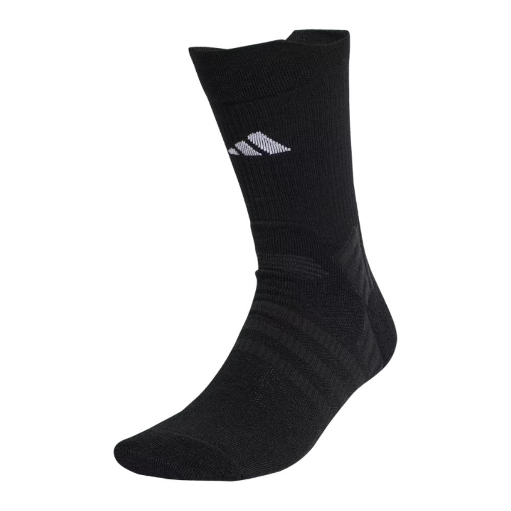 Adidas présente ses chaussettes CRW noires, pensées pour offrir un confort durable et un maintien irréprochable pendant l’effort.