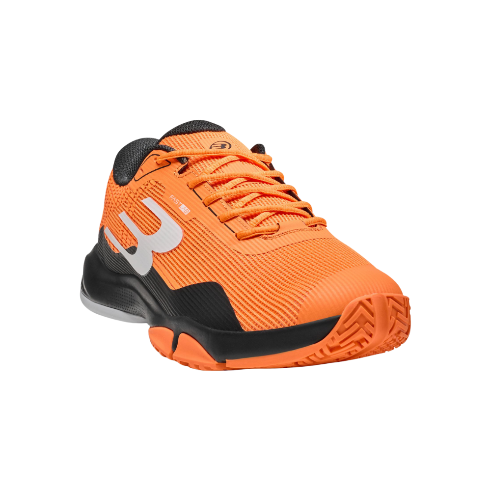 Découvrez la version 2026 des chaussures de padel Bullpadel Hybrid Fly 26V, présentée dans un coloris orange éclatant rehaussé de détails noirs, pour un style aussi audacieux que performant sur le court.