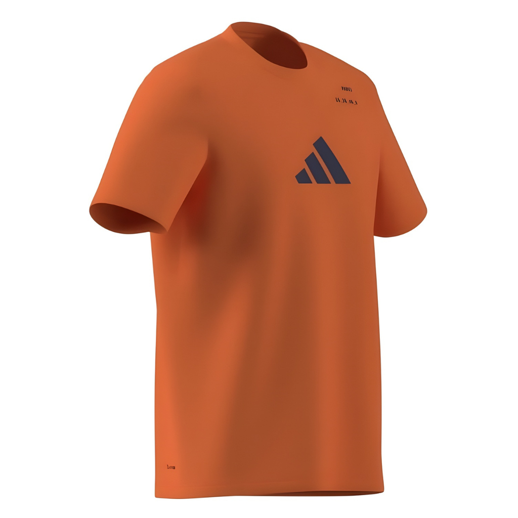 Avec son coloris orange vif et ses détails graphiques exclusifs, dont un terrain de padel imprimé dans le dos et plusieurs logos Adidas emblématiques, ce t-shirt affiche un look moderne et audacieux qui ne passera pas inaperçu.