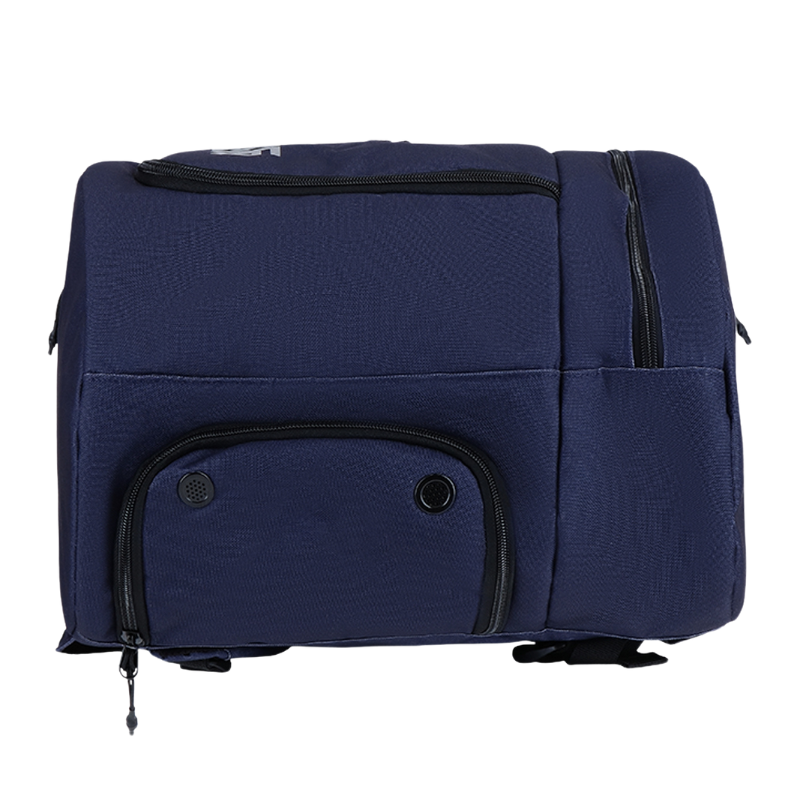Pour vos raquettes, une poche latérale dédiée peut en contenir jusqu'à deux, tout en les protégeant efficacement lors des transports.