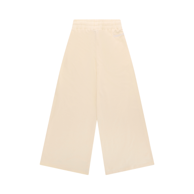 Entièrement beige avec un logo ton sur ton discret, ce pantalon séduit par sa coupe wide leg moderne et décontractée.