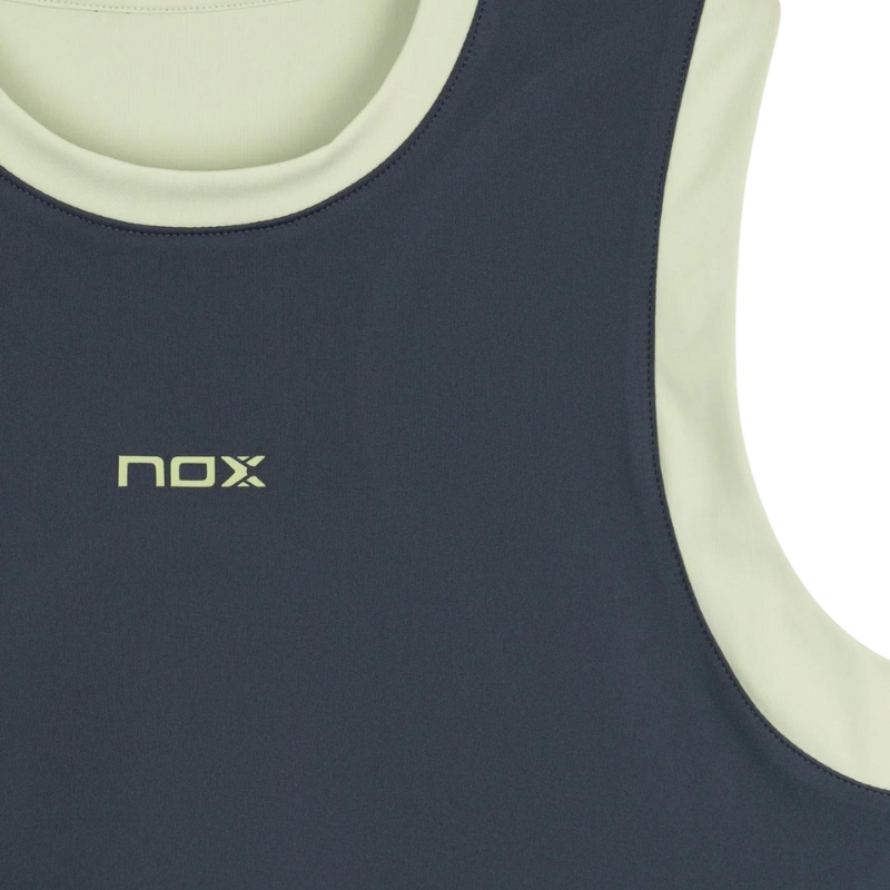 D’un gris sobre avec des touches de vert clair au niveau du col, du dos et des manches, cette robe vous assure un look épuré et moderne. Le logo Nox, placé discrètement sur la poitrine, apporte une finition raffinée.