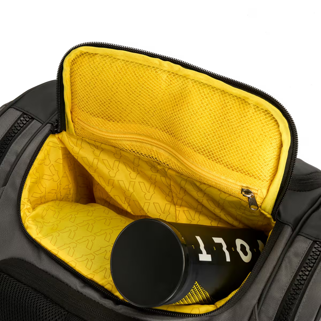Les deux poches latérales dédiées aux raquettes vous permettent de transporter plusieurs palas et de les changer facilement entre les matchs.