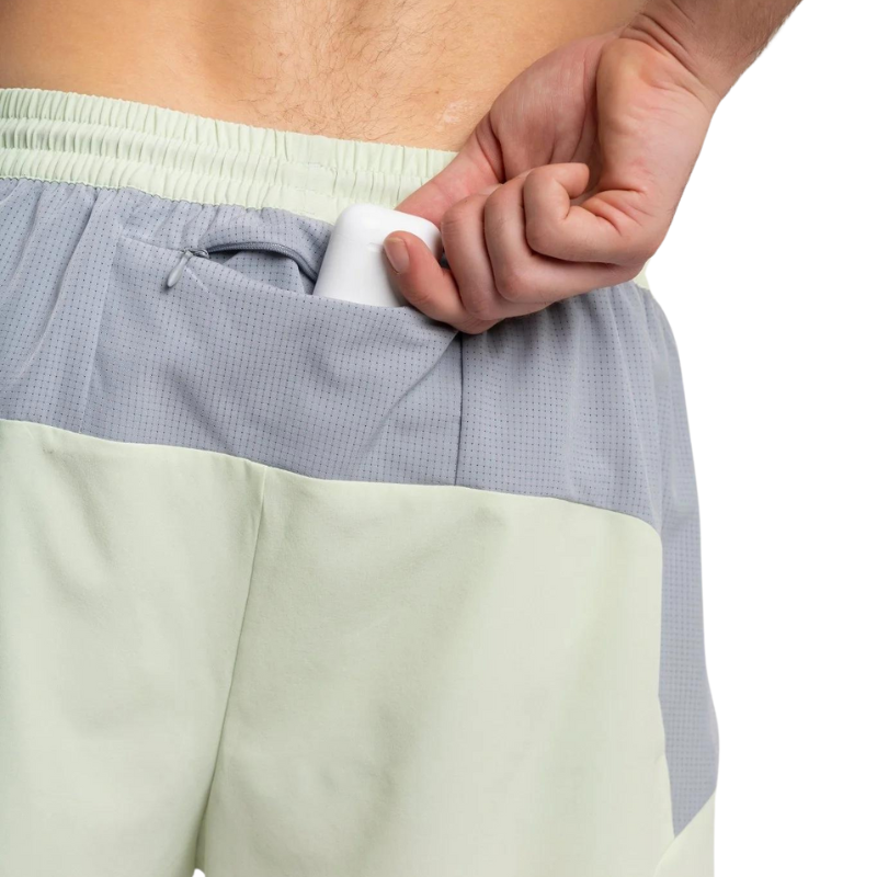 De couleur vert clair, le design du short est rehaussé par des touches de gris sur les poches et à l'arrière.