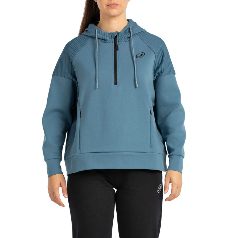 Bullpadel présente le sweat Bateo Bleu pour femme, une pièce moderne à la coupe légèrement oversize, idéale pour allier style et confort.