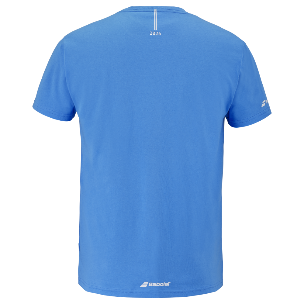 Majoritairement bleu, ce t-shirt adopte un design épuré, simplement agrémenté du logo Babolat centré, pour un style sobre et sportif.