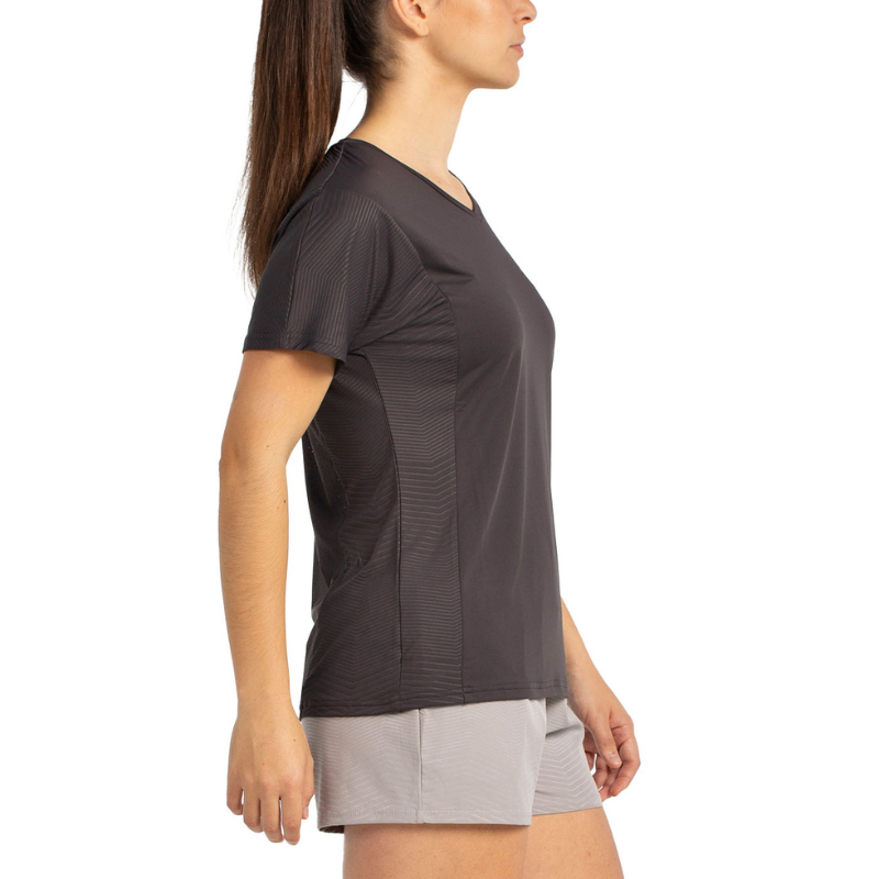 Des panneaux texturés à motif zigzag en relief viennent dynamiser les côtés et le dos du t-shirt, apportant une touche de style moderne.