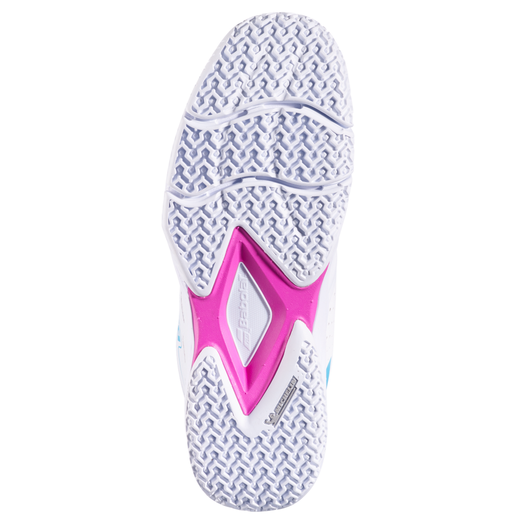 Babolat présente les chaussures de padel Femme Sensa Rise Blanc, un nouveau modèle conçu pour accompagner les joueuses dans leurs premiers pas sur le terrain.