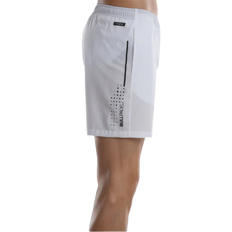 Le short Noto de Bullpadel est de couleur blanche, avec uniquement le logo et le nom de la marque en noir, ce qui lui donne un style intemporel.