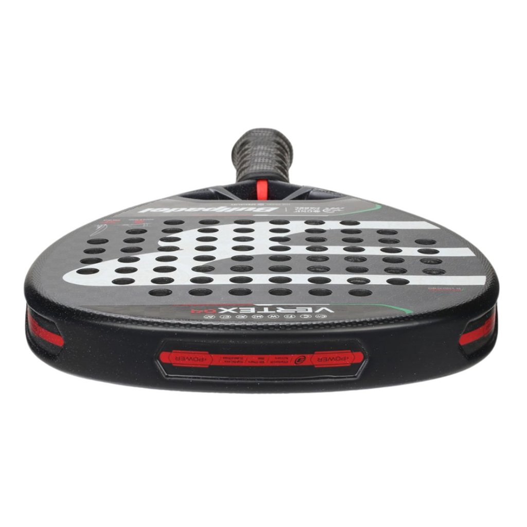 La technologie Vertex est conçue avec un cœur de raquette qui répartit les poids et les forces de manière uniforme dans tout le cadre afin d’augmenter la stabilité au moment de l’impact de balle. Les torsions et les vibrations sont considérablement réduites.