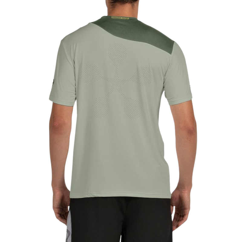 Affichez un style audacieux sur le court avec le t-shirt Bullpadel Puyo vert, un t-shirt technique qui associe un vert clair lumineux à des détails kaki pour un rendu moderne et sportif.