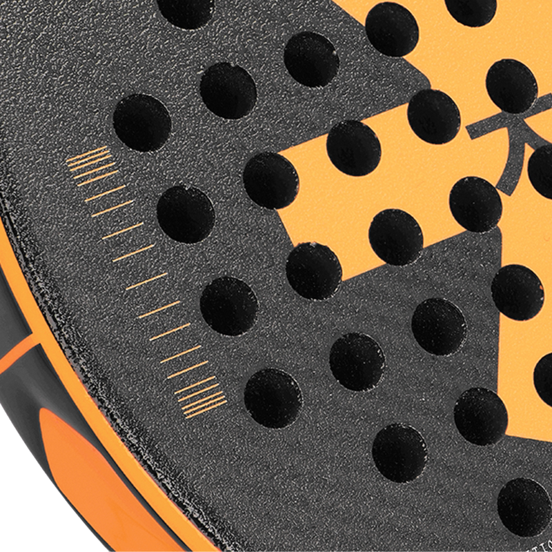 Son cadre en fibres de carbone 3K, un matériau de densité moyenne, apporte un équilibre parfait entre puissance et durabilité tout en conservant une bonne flexibilité. À l'intérieur, la mousse de faible densité procure d'excellentes sensations à chaque frappe, pour un confort et un contrôle optimaux.
