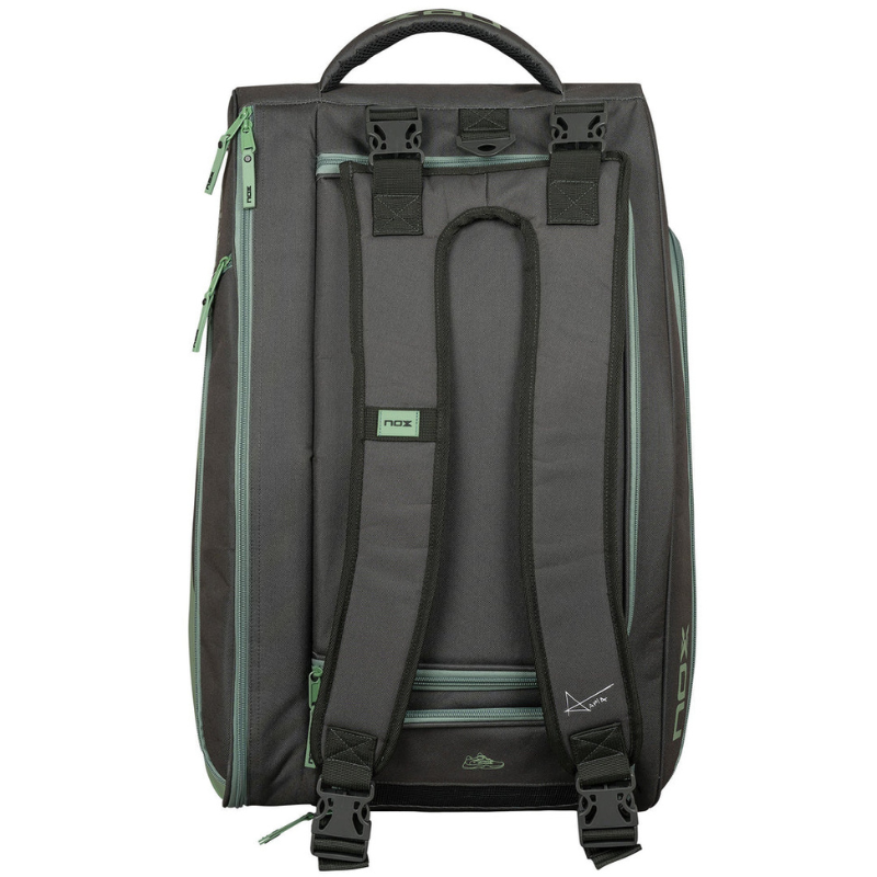Enfin, le sac est muni de multiples poches zippées, vous offrant une grande variété d'espaces de rangement pour vos accessoires et effets personnels. Que ce soit pour un court voyage ou un long tournoi, le sac de raquette AT10 Competition trolley de Nox est votre compagnon idéal, alliant praticité, style, et robustesse.