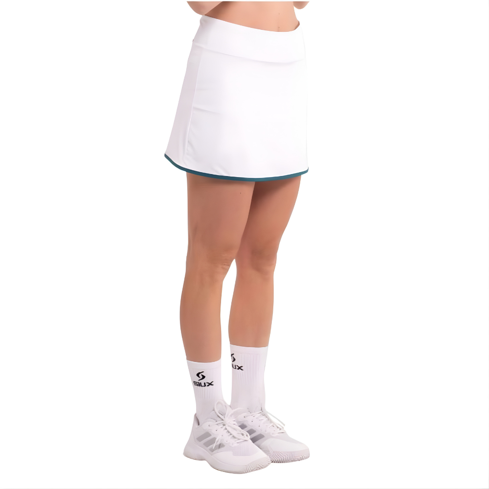 Découvrez la toute nouvelle jupe Siux, la Silk Blanc pour femme, conçue pour offrir élégance, confort et liberté de mouvement sur le court.