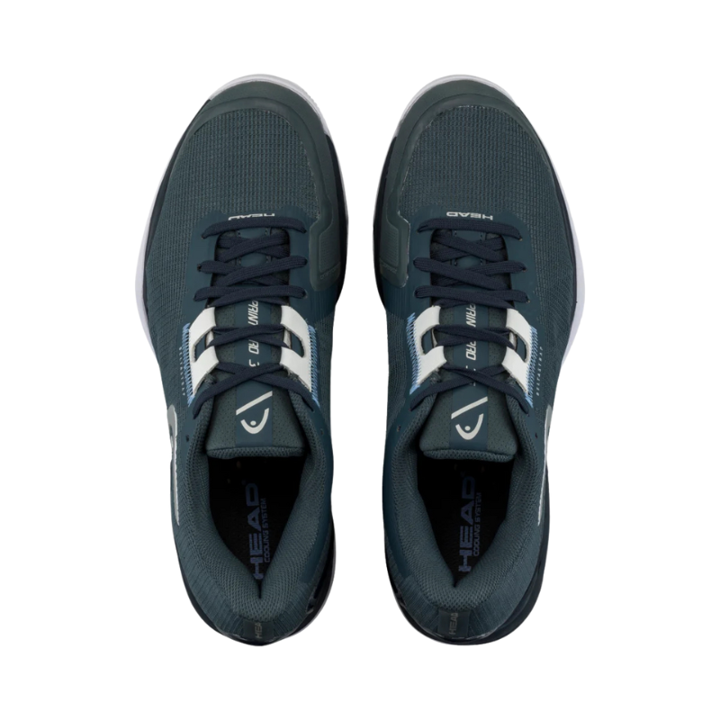 Head vous présente ses chaussures de padel Sprint Pro 3.5 Clay. De couleur gris et bleu, cette paire de chaussures est conçue pour allier légèreté, respirabilité et stabilité sur les courts.