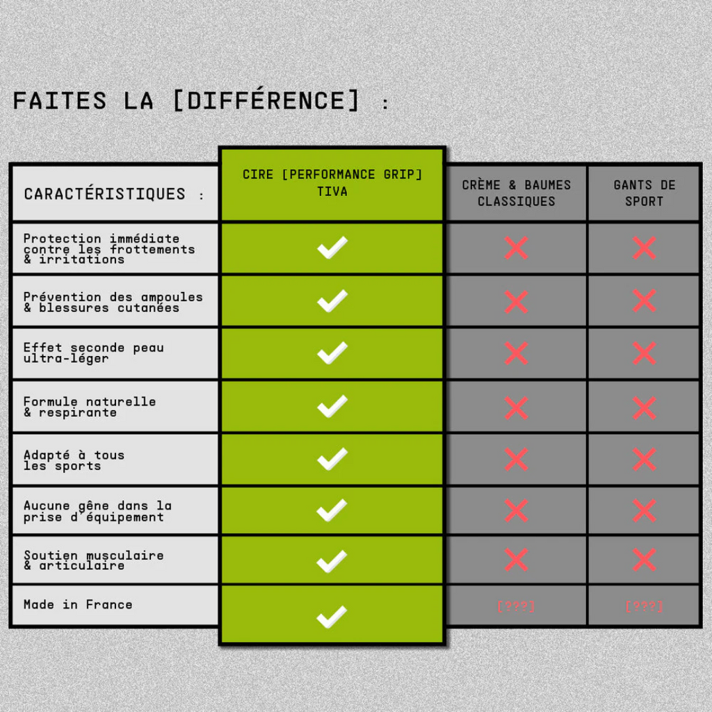 Pensée pour répondre aux besoins des athlètes les plus exigeants, cette cire forme une barrière efficace qui protège la peau des frictions et des irritations, même lors des efforts les plus intenses.