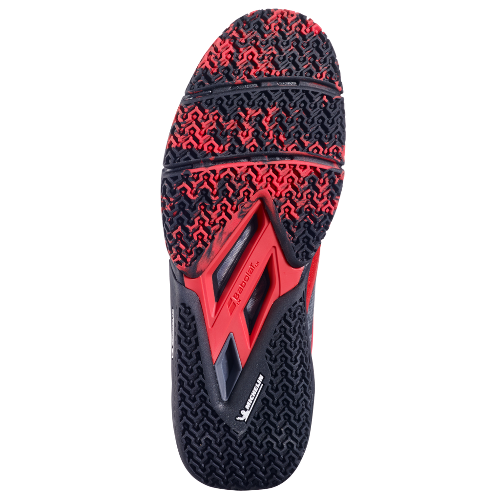 La semelle extérieure, conçue avec Michelin, garantit une adhérence fiable sur toutes les surfaces de padel.