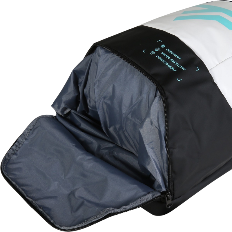 Sa poche spéciale raquette, située au niveau du dos, peut contenir jusqu'à deux raquettes tout en les protégeant efficacement grâce à des renforts sur les cotés. Cette poche peut aussi accueillir un ordinateur portable et des documents, rendant ce sac parfaitement adapté à un usage quotidien.