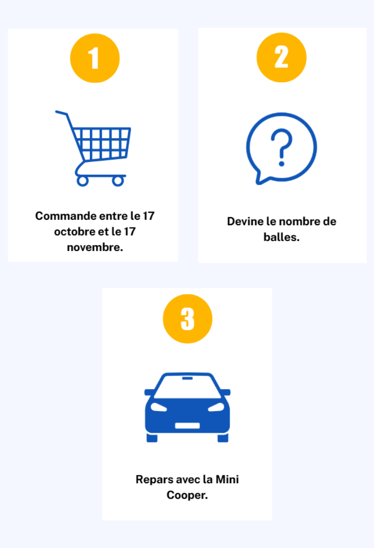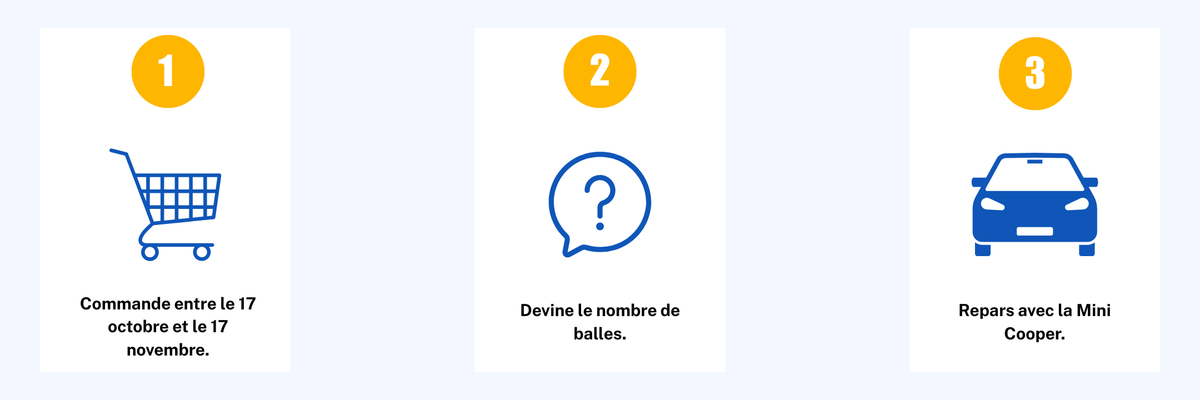Pour toute commande inférieure à 100€, tu auras une tentative pour estimer le nombre total de balles dans la voiture.