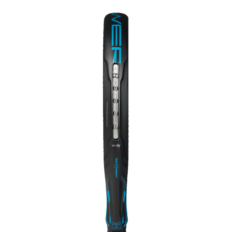 La structure est fabriquée en carbone à double hauteur renforçant le noyau et le cadre de la raquette pour augmenter la résistance à la torsion.