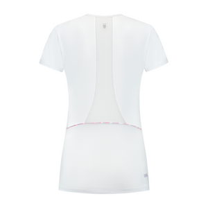 K-Swiss présente le t-shirt Advantage Tee Blanc pour femme, conçu pour allier respirabilité et liberté de mouvement sur le court.