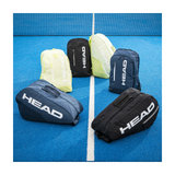 Head vous présente le sac à dos Base Padel, un modèle à la fois compact, élégant et fonctionnel, décliné dans une combinaison intemporelle de bleu marine et blanc.