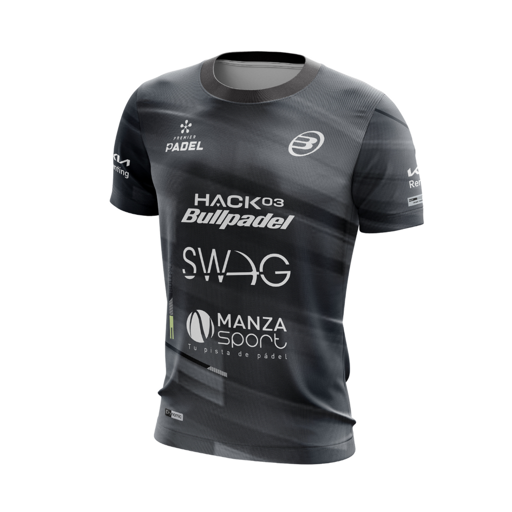 Bullpadel présente la version junior du T-shirt Adula, un textile technique et design qui est la réplique du maillot officiel de Paquito Navarro.
