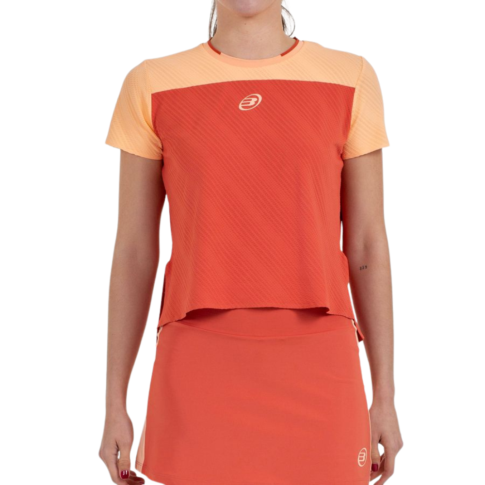 Découvrez le t-shirt Azabal Orange pour femme signé Bullpadel, issu de la collection Bea.