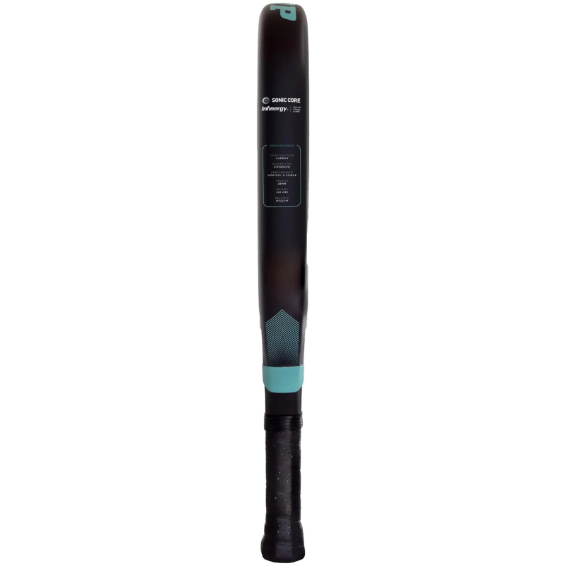 Le cadre, quant à lui, est fabriqué en carbone de haute qualité, garantissant à la fois résistance et légèreté. Ce matériau confère une robustesse exceptionnelle à la raquette tout en offrant une rigidité parfaite pour générer des coups puissants sans compromettre le contrôle.