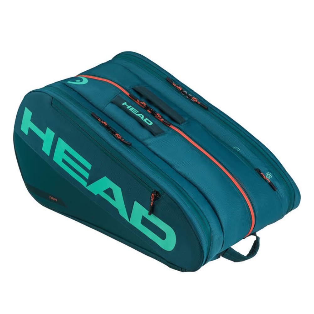 Head présente le Tour Padel Bag L vert, un sac au design dynamique vert et orange, qui combine style rafraîchissant et fonctionnalités modernes pour un usage optimal sur le court comme en déplacement.