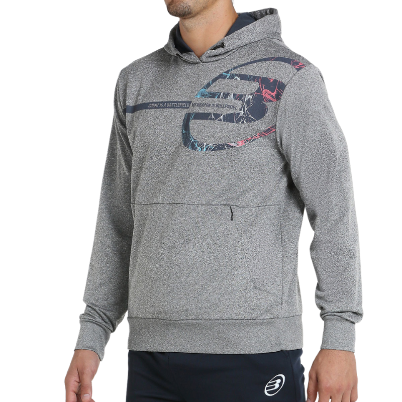 Avec sa teinte grise, ce sweat se distingue par l'impression en grand format du célèbre logo Bullpadel.