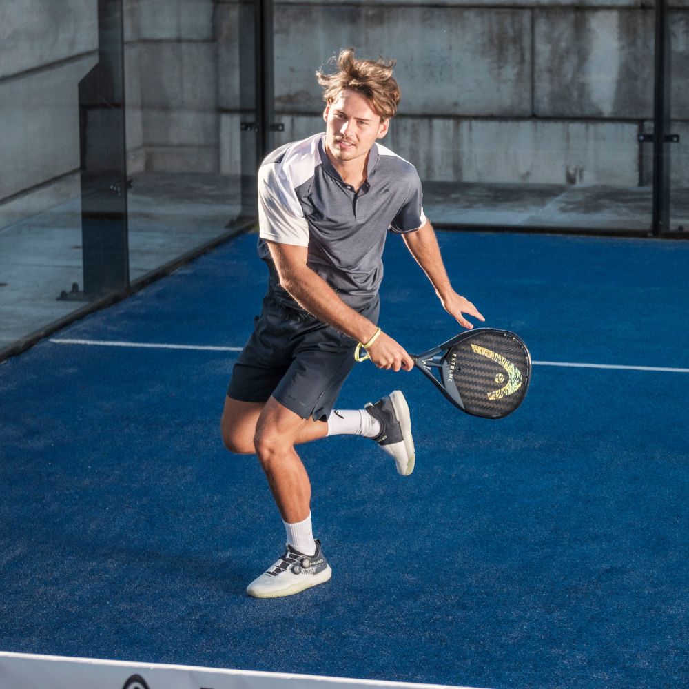 L'Antishock est une bande protectrice intégrée au cadre de la raquette, qui renforce sa durabilité en absorbant les chocs et les impacts. Elle préserve la raquette des frottements contre les surfaces dures, prolongeant ainsi sa durée de vie